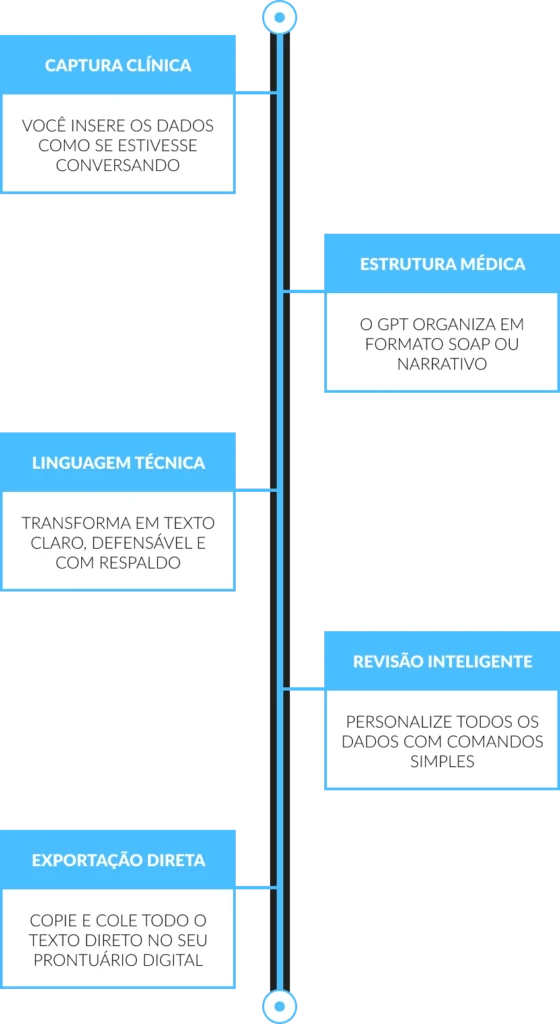 Descubra como médicos estão economizando horas por semana, protegendo-se juridicamente e organizando suas evoluções clínicas com um agente GPT treinado especialmente para isso.